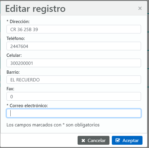 2. Aceptar: Al seleccionar el botón aceptar, se guardarán los datos modificados.