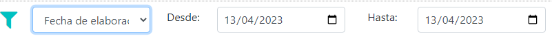 3. Fecha de elaboración: Al seleccionar la opción fecha de elaboración se apareceran las opciónes desde para ingresar fecha y hasta para ingresar fecha, el portal las filtrara según la información registrada y apareceran en pantalla.