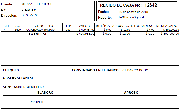 Esta vista le permite al usuario visualizar o imprimir los soportes de pago.